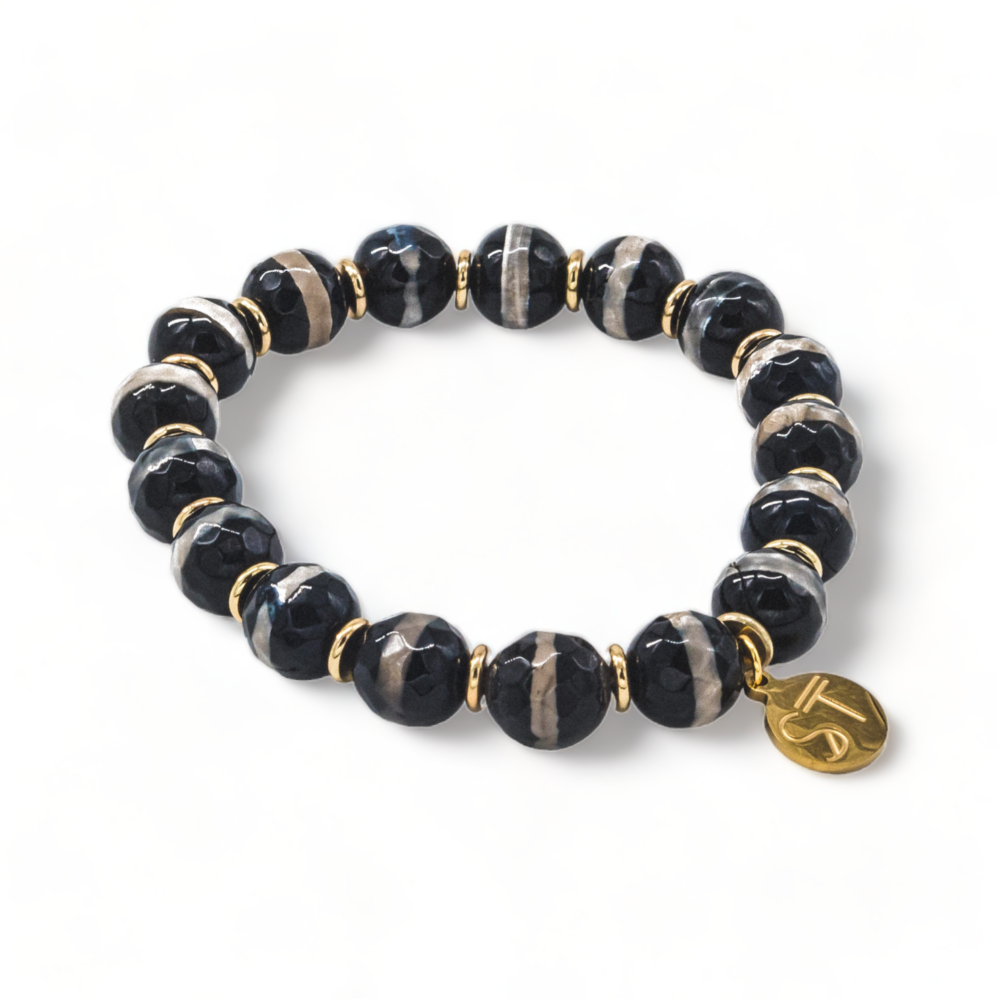 10mm White Line Black Agate |